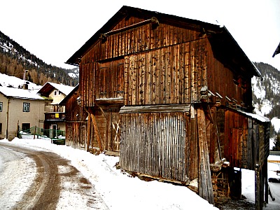 Most hamlets of the municipality of Livinallongo del Col di Lana display very interesting examples of vernacular architecture too: the Fodòm type (the Ladin name of the area) presents houses almost neatly split in two (see picture below).